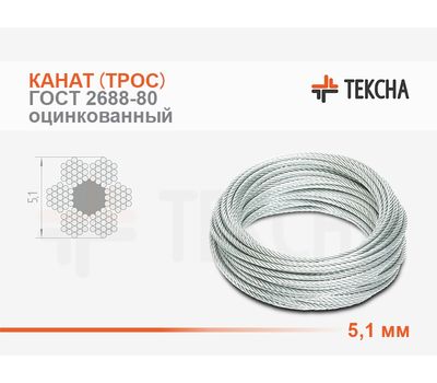 Канат (трос) стальной 5,1 мм ГОСТ 2688-80 оцинкованный (С) смазка (А1)